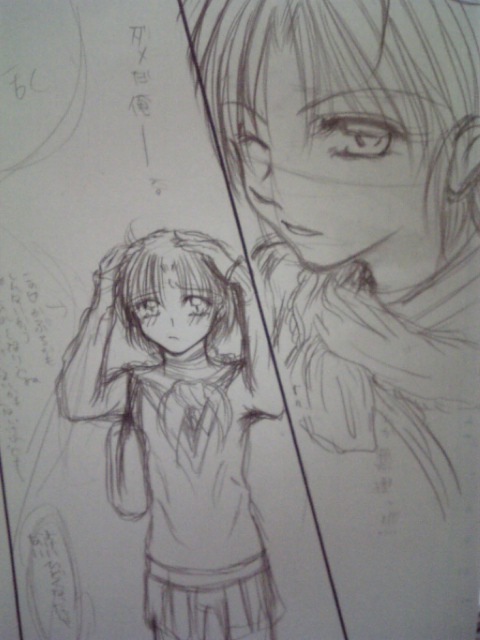 下描き状態の原稿なので、めっちゃキタないです