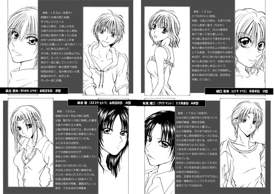 HAPPY BOXから発行予定の本に登場するオリキャラ達の紹介ペーパーです。